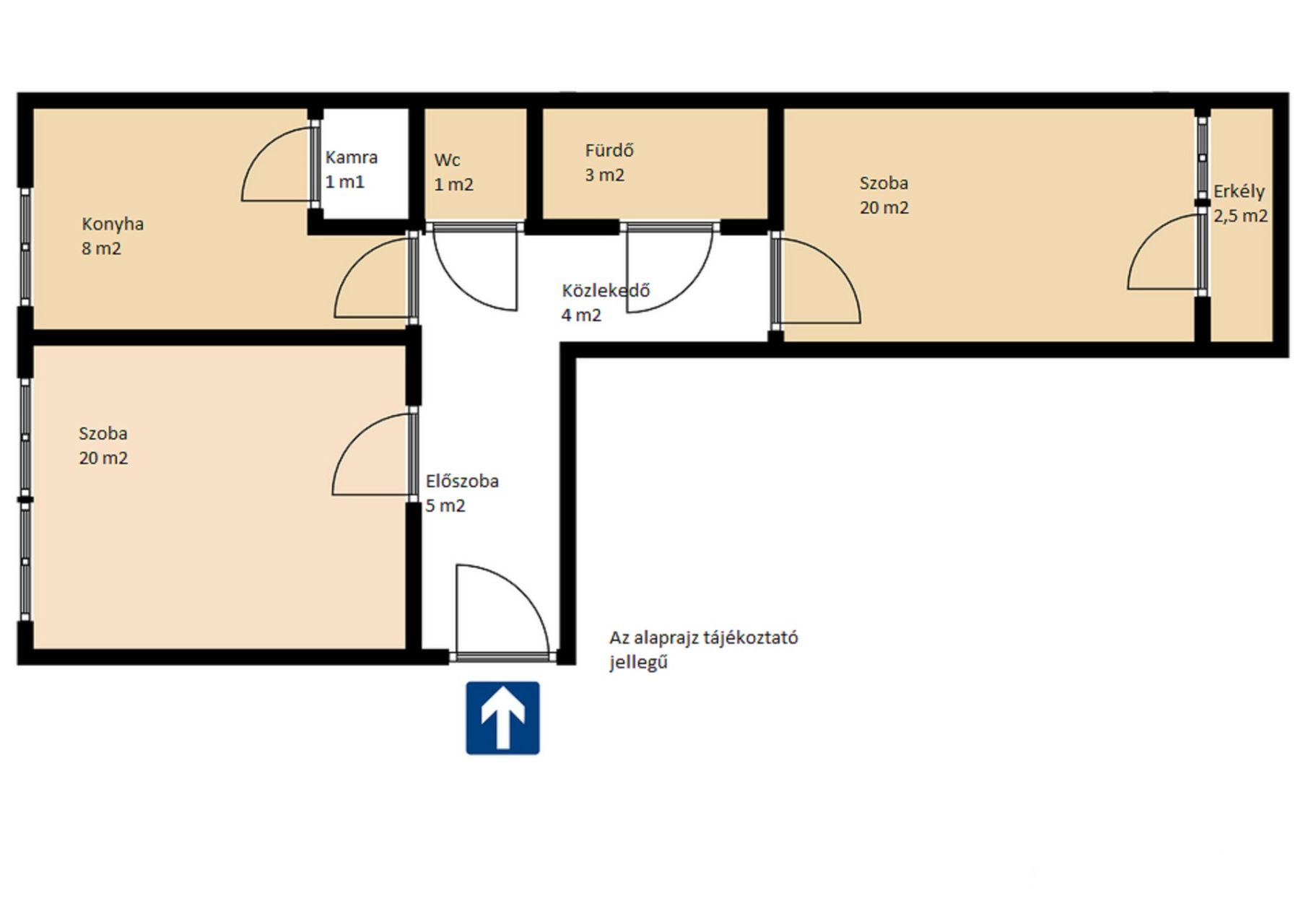 Az egyik szoba és a konyha az utcára néz, a másik szoba az udvarra. Egyedi radiátoros fűtéssel rendelkezik.