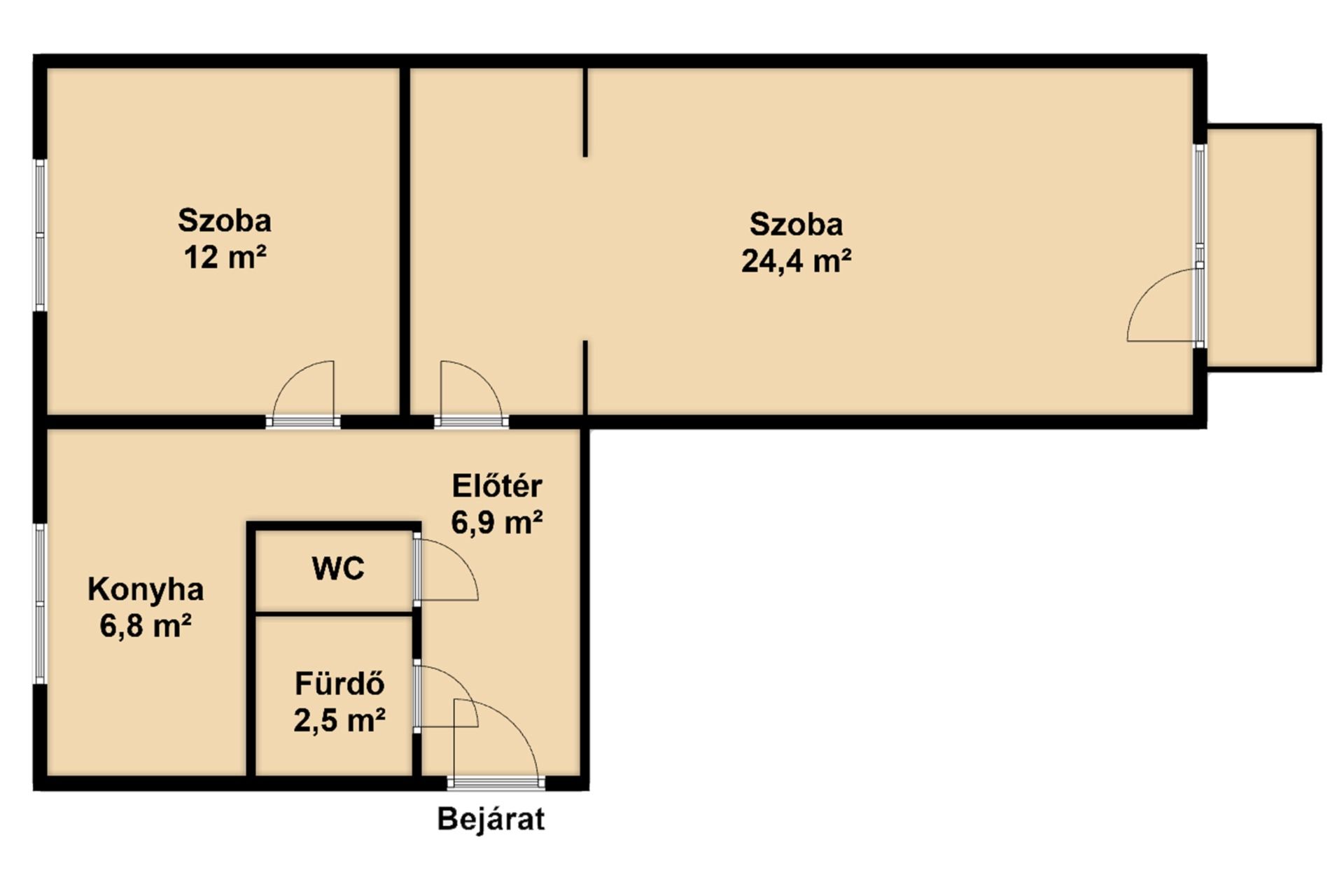 - Helyiségek: 1 szoba, 1 nappali, külön fürdőszoba és WC, napi élethez ideális elrendezés.