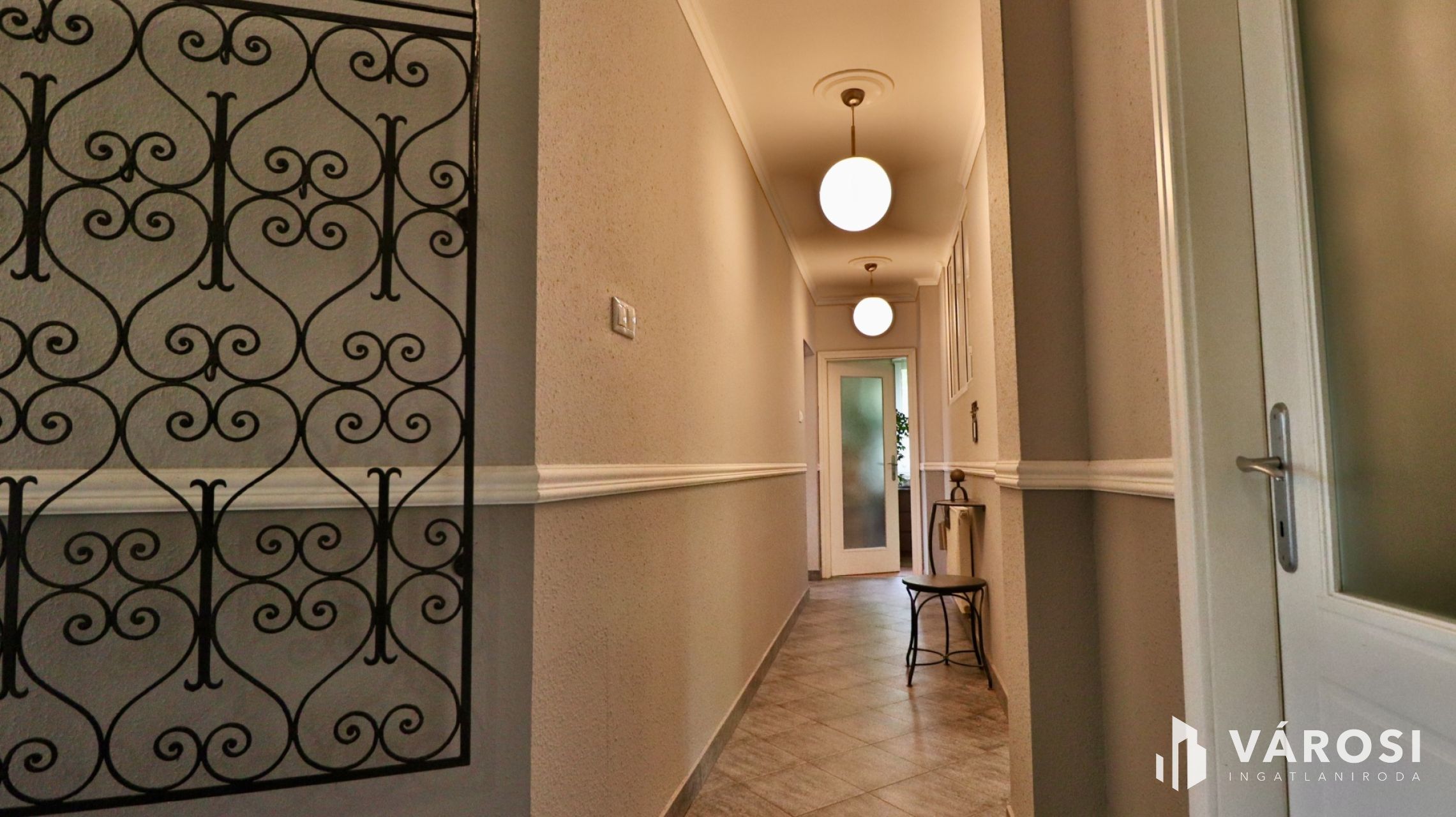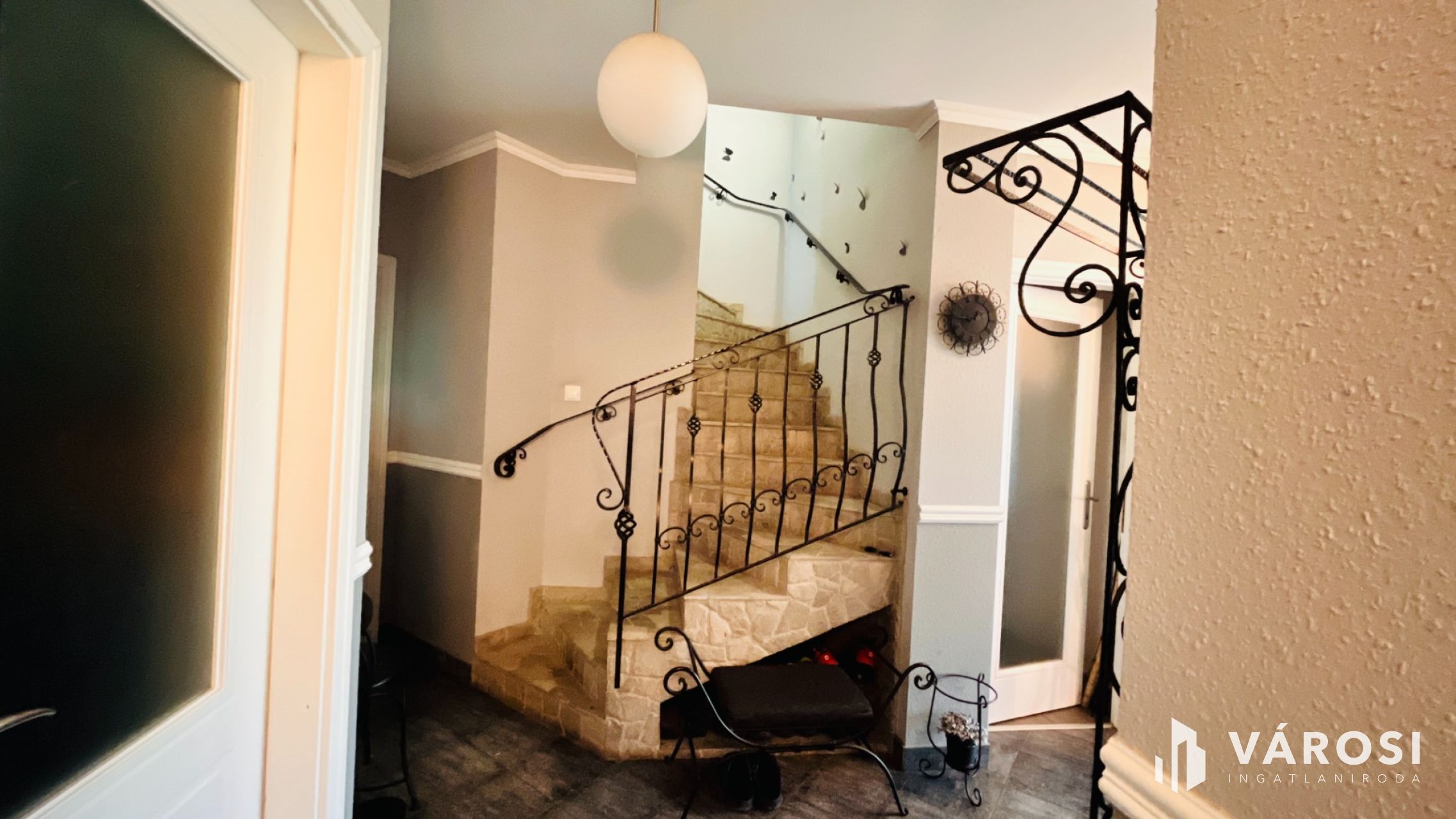 Wrought-iron staircase railing, quality flooring