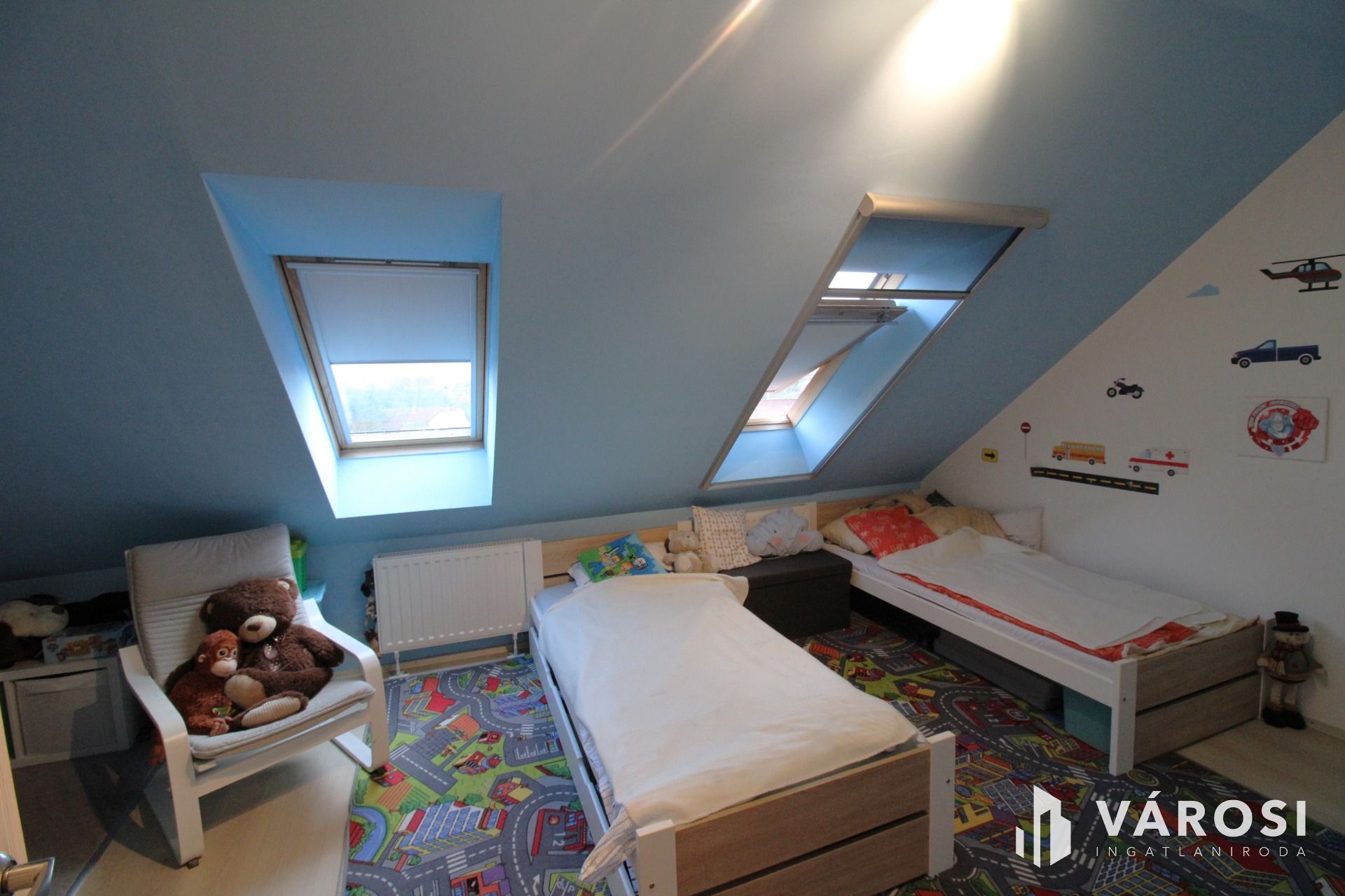 A felső szint mérete(41,48 m2) nagyságú melyre egy hangulatos lépcsőházon(4,49m2) keresztül jutunk fel. Rendelkezik kettő, tetőteres, világos szobával(12,3 és 16,55m2) egy közlekedővel(8,25 m2) egy gardrób helyiséggel(2,99m2) valamint egy fürdőszobával (12,63m2) melyben beépítésre került egy szauna is!