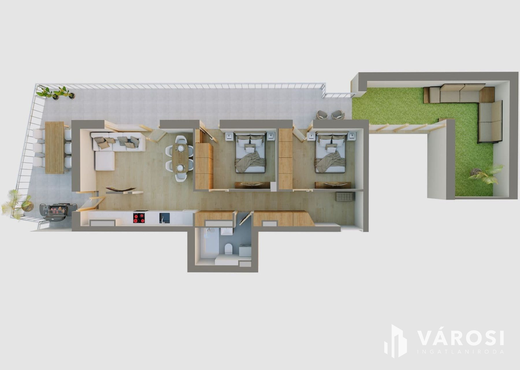 - Modern kialakítás: praktikusan tervezett terek, világos helyiségek – ideális egyedülállóknak, pároknak vagy kis családnak