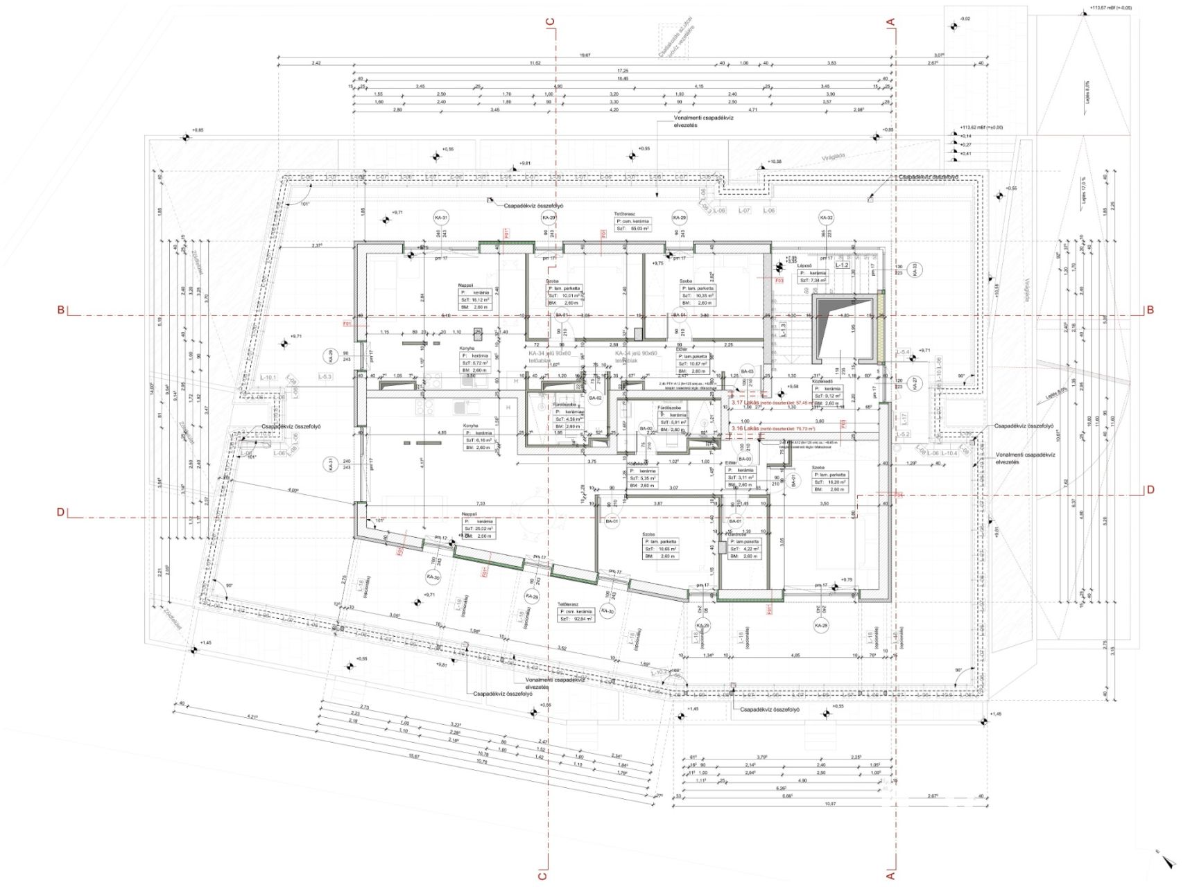 Alapterület: 57,45 m² + 65,03 m² tetőterasz