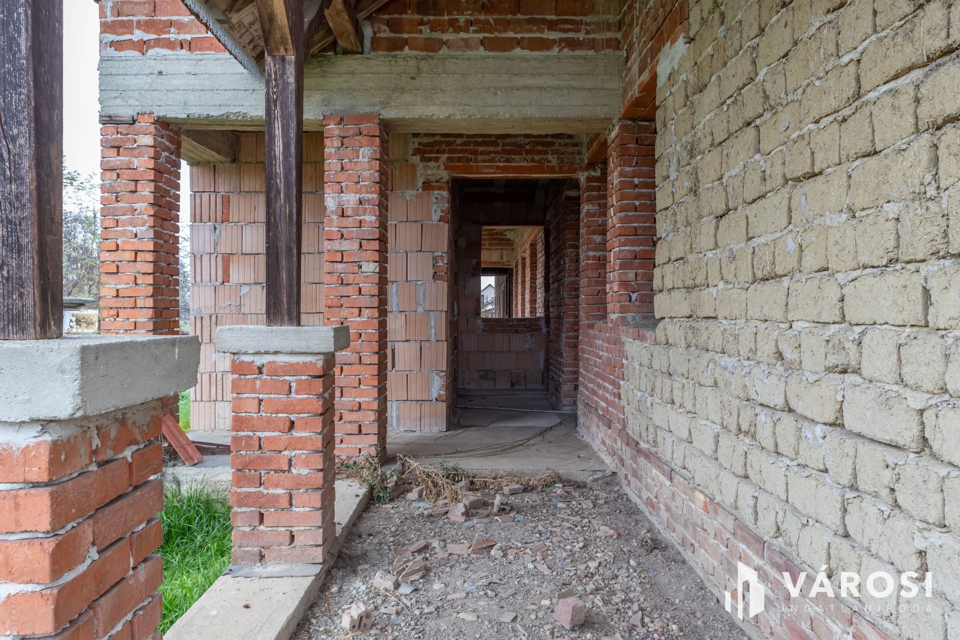 Eladásra kínálom Újiráz központi részén található 330 m2 alapterületű, + 238 m2 tetőtér beépítés lehetőségével bíró szerkezetkész ingatlant. Az épület hagyományőrző stílusban és az anyaghasználatot figyelembe véve ökoház ként kezdett épülni 2006-ban, több jól elválasztható helyiséggel. Falazat 50 cm vastag vályogtégla, a lábazat és a födém kis és nagyméretű hőszigetelő téglából lett kialakítva, mely mély beton alapon helyezkedik el. A közművek közül a víz bevezetésre került, a többi a telekhatáron megtalálható.