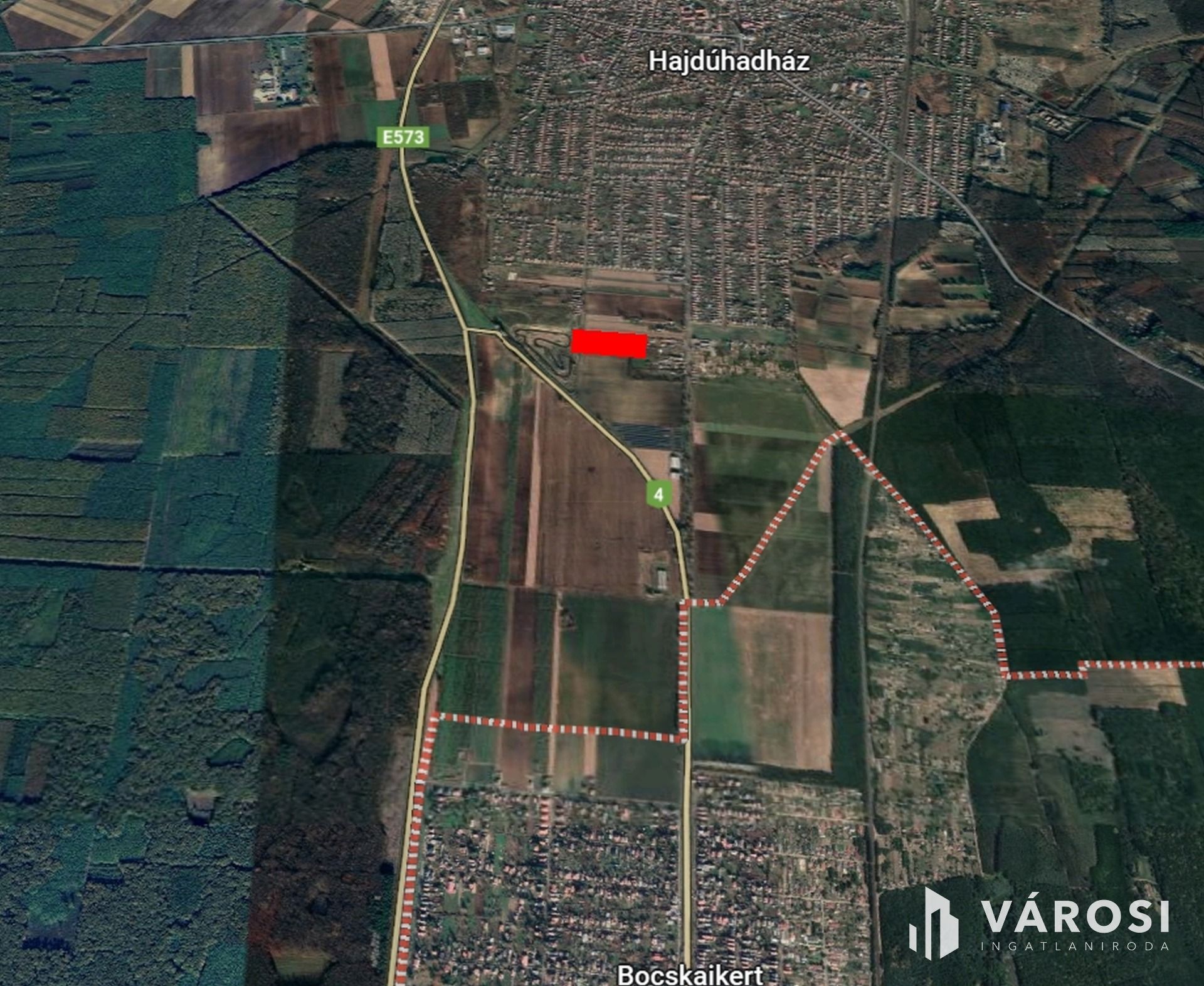 Eladó Hajdúhadház, Bocskaikert felőli részén, lakott környezet közelében művelési ág alól kivett, udvar besorolású, 94,51 m széles, és 164,12 m hosszú, összesen 16854,44 m2 ingatlan.